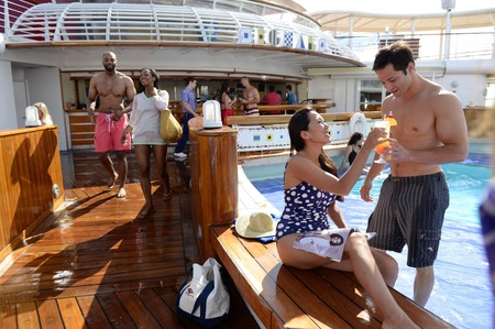 Answer the call for rest and refreshment at this breezy bar next to the Quiet Cove Pool. Offering views of the sea, shore and sunset from Deck 9, Signals is a superb spot for breathing easy and savoring a mixed drink.