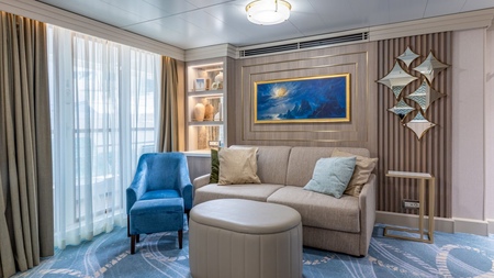 Boasting more space than a Deluxe Family Oceanview Stateroom, these spacious accommodations let you spread out in style.