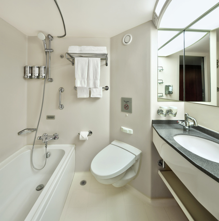 Our vessels have specially designed staterooms for guests who require mobility assistive features. If you have not booked one of these accessible staterooms but instead will be using a standard stateroom, you need to know about some limitations that adversely impact manoeuvrability, especially ingress and egress into bathrooms. For example, bathroom dimensions, doorsills, and the height of bathtubs in standard staterooms are often difficult to negotiate for guests who have mobility limitations. Additionally, standard stateroom doors and hallways may be too narrow for a wheelchair or scooter to manoeuvre into and out of the stateroom. Note: For safety reasons, these mobility devices must be stored and charged in the guests' staterooms. There are three types of accessible staterooms on our vessels.