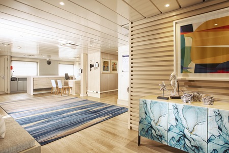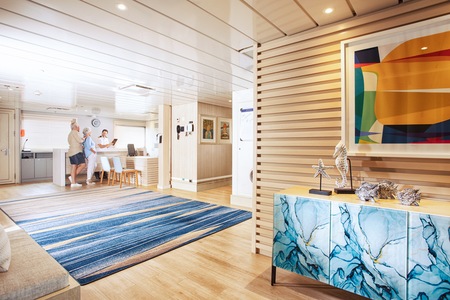 Located at the main intersection on the ship, the reception is the place where you will find the central bulletin board with daily program and other valuable information on the expedition experience.
