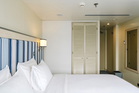 With a large window that illuminates the interior and allows you to take in the views as we cruise, these cabins offer an elegant and comfortable space to relax in after a day of active exploring. They feature a single bed, and all have private bathrooms with a shower and toiletries, as well as a safe and USA two-pin plug sockets.