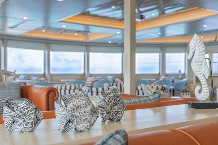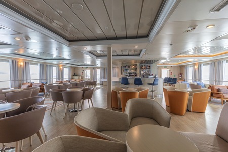 This large and well-lit area is not only the main bar, but also the place where most ship events will take place (welcome and farewell cocktail), and doubles as an ideal place for lectures. It’s the ideal site to chill and relax with Wi-Fi hot spot and direct access to our al fresco terrace.