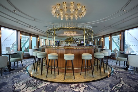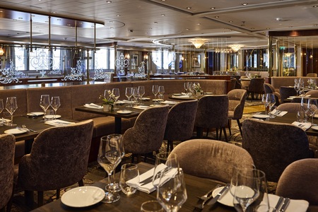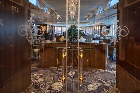 On the Ruby Deck is the main restaurant. Here, against a breath-taking scenic backdrop through the magnificent tinted panoramic windows, the chefs will amaze you with fine dining of the highest order, using freshly prepared seasonal produce to create the very best of European cuisine. The sumptuous breakfast buffet, with omelettes and fresh eggs prepared to order, ensures a great start to the day and a lunchtime buffet allows you to opt for a hearty lunch or something lighter such as a fresh, simple salad – just as you desire. A four-course dinner is excellently executed with silver service, enhanced by fine table linen, china and sparkling glassware whilst our ‘open seating’ policy ensures a relaxed dining experience which you will always look forward to.