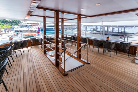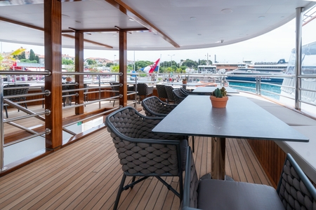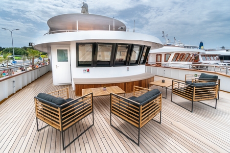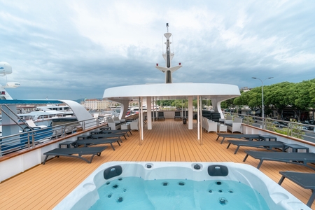 As you step on board, there’s an instant feeling of grandeur. With a maximum of 38 guests on board, your dedicated crew will be at your service throughout. Enjoy the spacious and stylish sun deck, discover a secluded spot to read a book, enjoy a relaxing dip in the hot tub or sit back, relax and unwind with a cool refreshing drink from the bar as you enjoy unimpeded panoramic views of the unspoilt landscapes of the Adriatic coastline. There’s a chance to enjoy a quick dip from the swimming platform in one of the secluded bays’ crystal clear waters.