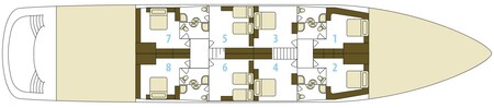 Located on the lower deck they measure approximately 17 square metres (183 square feet) and feature 2 single beds which can be made up as a double or separated as a twin (except cabins 3,4,5 & 6 which have fixed doubles), plus two fixed porthole windows allowing plenty of natural light.