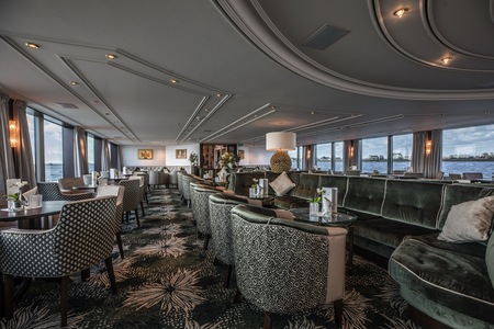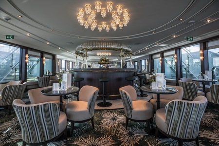 At the Riverview Kitchen with its large panoramic windows, enjoy a more intimate dining experience whilst taking in the fantastic views. Here in the evenings the chef presents in the open kitchen a selection of locally inspired dishes which you can enjoy with your fellow guests; this intimate dining experience can be reserved on board at no extra charge. When the weather allows the panoramic windows may be fully opened on to the terrace to allow a delightful al fresco dining experience.