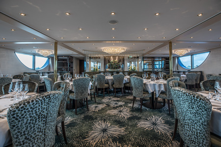 The Diamond Deck is where you will find the very heart of the ship - the superb panoramic observation lounge and bar; a lounge in every sense of the word, complete with plenty of comfortable leather armchairs and sumptuous sofas where you can sink into warmly colourful cushions in beautiful quality fabrics with a freshly made cup of tea. A thick wool carpet feels lovely underfoot and the tasteful contemporary lighting above creates a welcoming and refined ambience, further complemented by the discreet and intuitive service resplendent of the finest five-star hotels. So just sit back with your favourite cocktail and take in the truly mesmerising view.