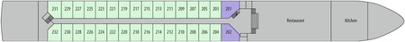 For more space you can upgrade to a suite available on all decks, featuring the same facilities as standard cabins but being larger at 18.5 square meters (199 square feet). The extra space is purely devoted to the living area, so you really notice the difference.