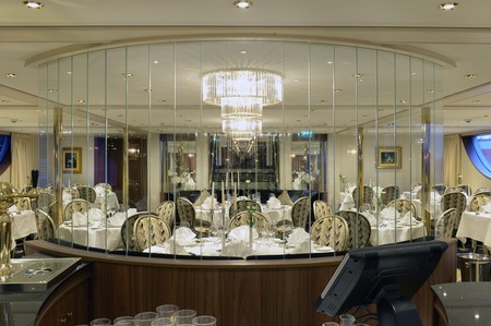 On the Ruby Deck is the main restaurant. Here, against a breath-taking scenic backdrop through the magnificent tinted panoramic windows, the chefs will amaze you with fine dining of the highest order, using freshly prepared seasonal produce to create the very best of European cuisine. The sumptuous breakfast buffet, with omelettes and fresh eggs prepared to order, ensures a great start to the day and at lunchtime the salad and dessert buffet allows you to opt for something lighter, or choose a hearty lunch from the pasta station or the à la carte soup and main courses – just as you desire. A four-course dinner is excellently executed with silver service, whilst our ‘open seating’ policy ensures a relaxed dining experience which you will always look forward to.