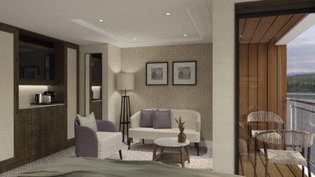 Enjoy your cabin, your way. You can marvel at the views from your floor-to-ceiling glass doors or slide them away when the weather is warm to enjoy the gentle breeze from your French balcony. The hotel-style bed can also be configured as a double or twin.