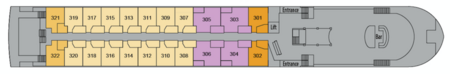 We include mobility information regarding lifts between decks on each ship under the deck plan section of the page. You may wish to view all of our ships before booking.