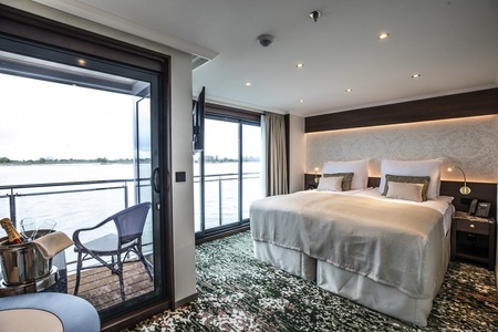 Suites on the Diamond and Ruby Decks have ‘French Balconies’ – panoramic floor to ceiling sliding glass doors bringing riverside life just that little closer!
