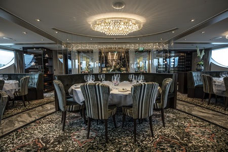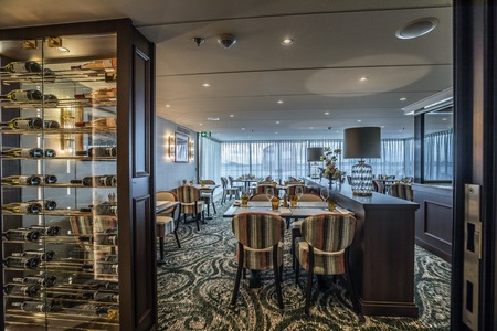 At the Bistro with its open kitchen, large panoramic windows and al fresco seating, enjoy a more intimate dining experience whilst taking in the fantastic views. Here in the evenings the chef presents his personal signature dishes to a small number of diners with menus varying according to the seasons; this intimate dining experience can be reserved on board at no extra charge. When the weather allows the panoramic windows may be fully opened on to the terrace to allow a delightful al fresco dining experience.