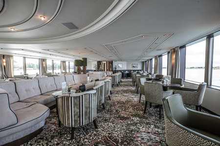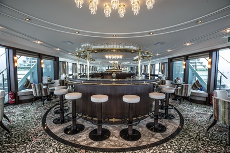 It is extremely difficult to convey just how extraordinary this outstanding ship really is and exactly what distinguishes it from similar vessels. It would be very easy to just say ‘luxurious’ but it’s much more than that; we have deliberately avoided the current trend for a minimalist style where you could be anywhere in the world, creating instead a unique yet exquisite blend of understated taste, style and elegance at the highest level. Immediately striking is just how exceptionally spacious this new vessel is as you enter a gleaming, richly coloured marble-floored lobby flooded with natural light from a stunning atrium above. Moving inside, exceptional creativity from Europe’s finest design studio has produced a superbly balanced masterpiece of onboard style, utilising sustainable rich hardwoods, gleaming brass and polished copper, sparkling glass and intricate wrought iron. The ship is beautifully illuminated throughout – including the exterior and imaginatively furnished with harmonious colour schemes, all designed to create the serene atmosphere reflective of the golden age of cruising which time after time you tell us you adore.
