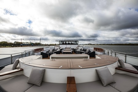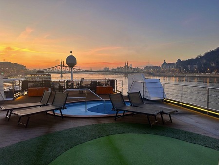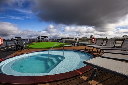 Head on up to this truly spectacular deck and what could be better than watching life ashore slip by from the comfort of a sun lounger, perhaps under shade if the weather gets too hot! There’s always the refreshing splash pool too or why not try your hand on the putting green. Then take a refreshingly long drink and that book you’ve been meaning to read for ages on to the lovely terrace area at the fore of the ship, located right in front of the wheelhouse where you can view the Captain and his team skilfully navigating the twisting river and enjoy truly ‘driving seat’ views. Take a deep breath and relax into the pace of river cruise life – now you’re really on holiday!