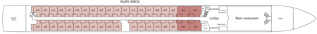 Located on the Ruby Deck is the lobby area, where your Cruise Director is usually on hand, while the reception desk is staffed 24 hours a day should you need assistance. Nearby, our boutique shop is lovely for a browse.