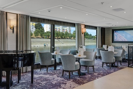 At the heart of the ship, the Diamond Deck is home to the welcoming Panorama Lounge and Bar. From here, you can take in ever-changing views, watching charming villages and riverside life as they drift past. As the day draws to a close, guests naturally gather here to share stories from the day’s discovery. Return after dinner to enjoy a digestif and the evening’s entertainment.