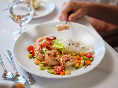 Many of the dishes on the Main Dining Room’s menu rotate each night, which means you could go an entire week without ever repeating a course. Every meal here begins with something delicious from the starters section of the menu – like savoury duck terrine layered with apricot chutney on toasted sourdough bread, a flaky Vidalia onion tart baked with whipped eggs, cream and smoked bacon, or spiced aubergine and Kalamata olive tartare prepared with red pepper hummus and served on crispy garlic bread. Then, choose from international entrees like Moroccan-spiced ahi tuna served over mint couscous, sautéed spinach and tequila peppers with a cool yoghurt vinaigrette. Or mojo-marinated bone-in pork loin paired with sweet potatoes, broccoli and a cumin-citrus reduction. Dessert is also worth getting excited about, with options like sweet cream-soaked tres leches, home-style carrot cake with cream cheese icing and a light and fluffy Grand Marnier soufflé.