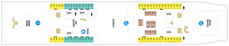 Onboard all interior public spaces are smoke free*. Smoking is not permitted in any dining venue, theater, bar, lounge, hallway, elevator, and jogging track.