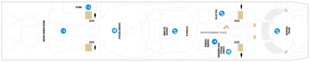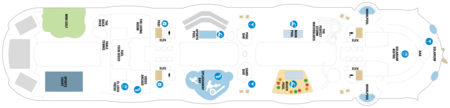 Onboard all interior public spaces are smoke free*. Smoking is not permitted in any dining venue, theatre, bar, lounge, hallway, elevator, and jogging track.