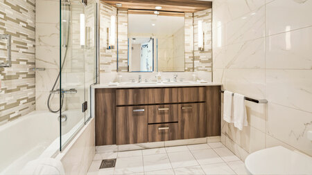 Two-level urban loft with contemporary décor, private balconies, guest bathrooms and so much more.