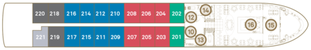 Staterooms are located on the Jewel Deck with large picture windows to ensure a great view. They have a spacious design and clever layout alongside all the usual luxurious amenities and furnishings.