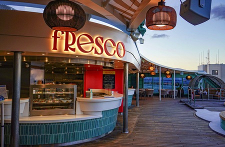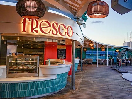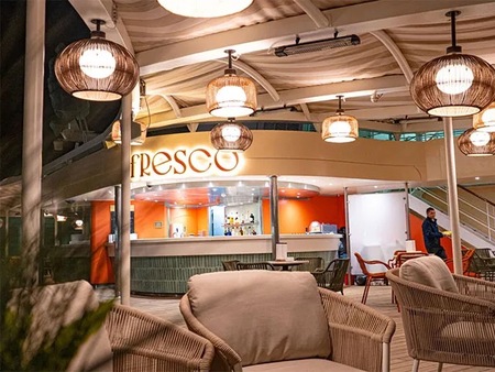 We’re delighted to introduce Fresco, our new Mediterranean-inspired venue with alfresco seating, designed for relaxed, sun-soaked dining and panoramic views. This lovely new area features gently changing ambient light features, a refreshing pediluvio foot spa experience and, weather permitting, a spotlight stage for intimate live performances - perfect for unwinding in warmer cruise destinations. At Fresco, you will bea ble to enjoy a tempting selection of light bites, and on select evenings, the venue will transorm into an inviting lounge deck under the stars.