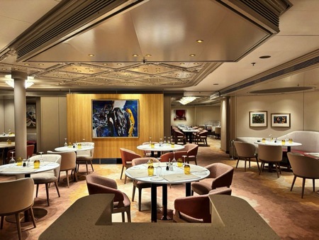Designed to mirror the Indian Ocean Room, the Arctic Room leads into the main Aurora Restaurant. Beautifully decorated with shades of blue and grey to reflect the nature of the Arctic, it’s adorned with Fred. Olsen’s hand-selected artwork collection by Keith Grant, and is the ideal room for intimate meals as well as hosted breakfasts and lunches with our specialist speakers.