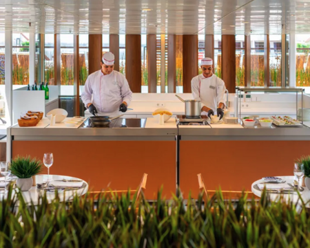 A revolutionary indoor/outdoor area for a casual meal al fresco, meeting friends for drinks or simply relaxing while enjoying breathtaking views and fresh air.